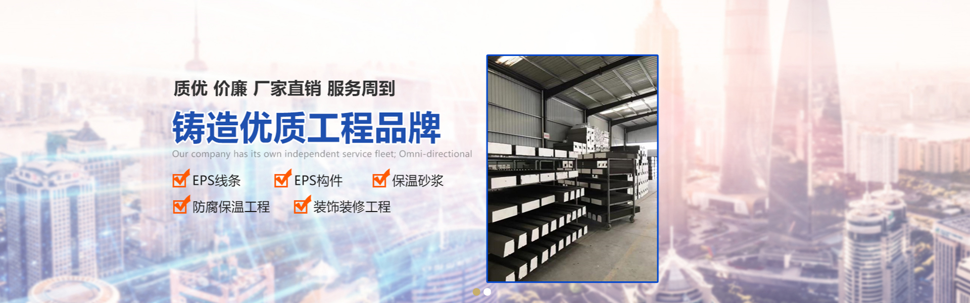 是一家專(zhuān)業(yè)生產(chǎn)各種型號(hào)的EPS線條、GRC線條、保溫砂漿,防腐保溫工程和裝飾裝修工程施工為主的高科技民營(yíng)企業(yè),專(zhuān)業(yè)致力于外墻保溫材料和外墻裝飾線條的生產(chǎn)和施工工程;